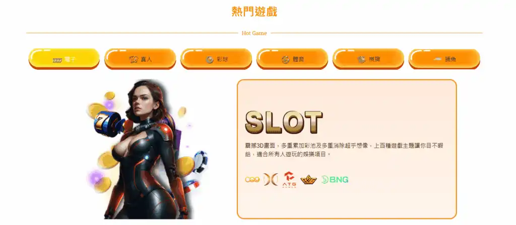 包含電子機台、真人百家樂、體育賽事、彩票、捕魚機等,上百款遊戲任你選擇。